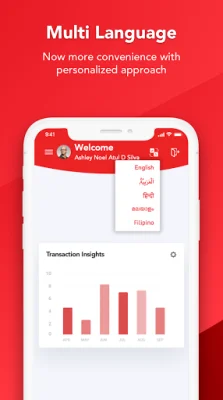 Our app also offers a transaction statement feature, allowing you to view, download, and email your entire transaction history for a better understanding of your transfers. We also provide multi-language support, with the option to choose from five major languages for a more personalized experience.