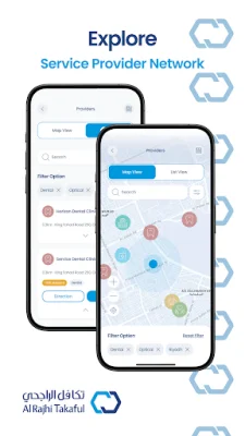 For those in need of medical services, Al Rajhi Takaful offers an integrated map feature that helps locate the nearest approved providers. This makes it easier for customers to access the services they need without any delay. Furthermore, users can request a callback from the company's team for any inquiries or assistance they may need.