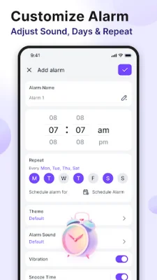 Personalization is also a key aspect of this alarm clock. You can choose from a variety of built-in tones or use your own music as an alarm sound. The app also offers stylish themes and visuals to customize the look of your alarm screen.