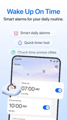 The alarm clock feature allows you to set unlimited alarms with custom names, snooze and dismiss directly from the lock screen, and choose from a variety of ringtones and vibration options. You can also set recurring alarms for daily, weekday, weekend, or custom days, and adjust the snooze duration to your preference. For those looking to establish a healthy sleep routine, the bedtime alarm feature is a helpful addition.