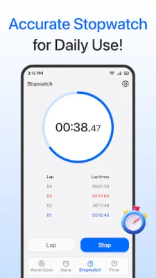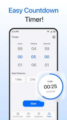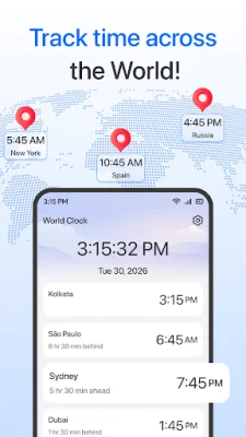 In addition to its alarm features, the app also includes a world clock for over 200 cities, a stopwatch with accurate lap recording, and a countdown timer with multiple preset options and a visual progress ring. It also offers a dark theme for comfortable use at night and home screen widgets for quick access to time and upcoming alarms.