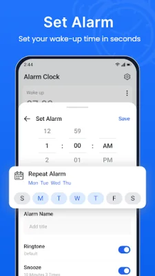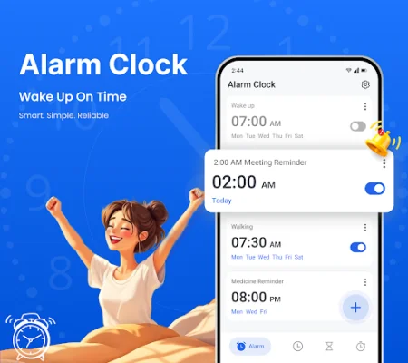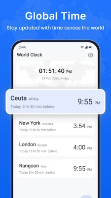 This application is designed to help you manage your time more efficiently. It offers a variety of features that make it easy to set alarms, track global time zones, and use a timer and stopwatch for tasks and fitness. With customizable snooze and vibration options, you can easily add alarms by date and wake up peacefully to a gradually increasing sound.