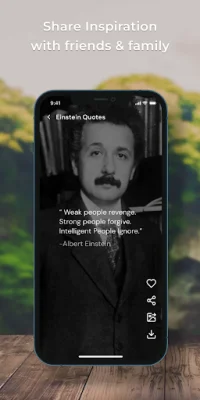 The app features a collection of Albert Einstein's famous quotes, including his renowned statements that have become iconic in the world of science and beyond. Users can also browse through a visual gallery of Einstein's quotes and have the option to like or dislike them. The app also allows for easy sharing and saving of quotes, making it simple for users to spread Einstein's wisdom with others.