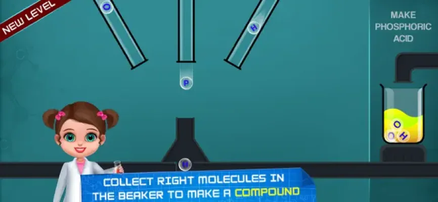 The "Make Compounds" level offers a unique gameplay experience where users must collect the right molecules to create different compounds. The app asks users to make specific compounds and challenges them to do so without making any mistakes. This level is a fun way to learn about molecular formulas and compounds.