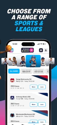 This application offers a variety of features for daily fantasy and pick'em contests, making it a quick, simple, and enjoyable gameplay experience. Users can participate in contests for multiple sports leagues, including NFL, NBA, MLB, NHL, college football, and basketball. Additionally, players can make predictions on player stats and team outcomes through the More/Less and Prop Picks feature.