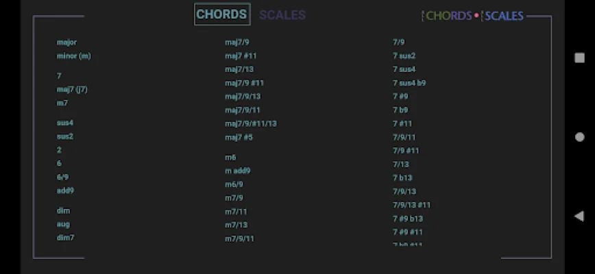In summary, this application offers a comprehensive collection of chords, scales, and analyzers for guitar and piano players of all levels. With its user-friendly interface and various features, it is a valuable tool for musicians looking to improve their skills and expand their repertoire.
