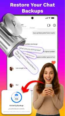 Users can easily recover deleted messages on WhatsApp using the notification history recovery feature. The app also allows users to restore deleted Instagram chats from notifications. To backup contacts, users simply need to open the contacts backup section and choose the option to backup to Google Drive. And with the contacts backup & restore option, users can easily restore deleted contacts from Google Drive at any time. The caller name announcer feature works hands-free, automatically speaking the caller's name aloud. Users can also change their incoming caller theme and personalize their calls with multiple themes and styles within the app.