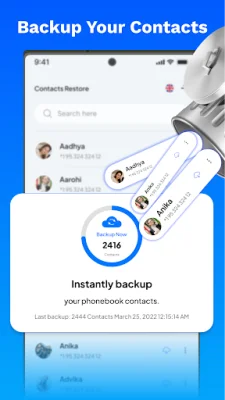 The Contacts Backup & Restore app allows users to easily backup their contacts to Google Drive and keep them safe for the long term. It works as a secure tool to backup and restore all phone numbers in a single file. Whether you need to restore deleted contacts, transfer them to a new phone, or create a backup on Google Drive, this app makes the process fast and reliable. With just one tap, users can backup all their contacts to Google Drive and restore them whenever needed.