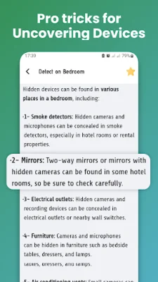 To use the Hidden Camera Detector Finder, simply open the app and move your phone near any suspicious area. The app will alert you with beeping and vibration when it detects a hidden device. This makes it a convenient and effective tool for use in any sensitive location, such as a bedroom or bathroom.