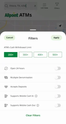 For those in need of specific ATM features, the app offers search filters to find ATMs that offer multiple denominations or accept Allpoint+ Deposits. Users can also create a list of their favorite Allpoint ATM locations for quick access.