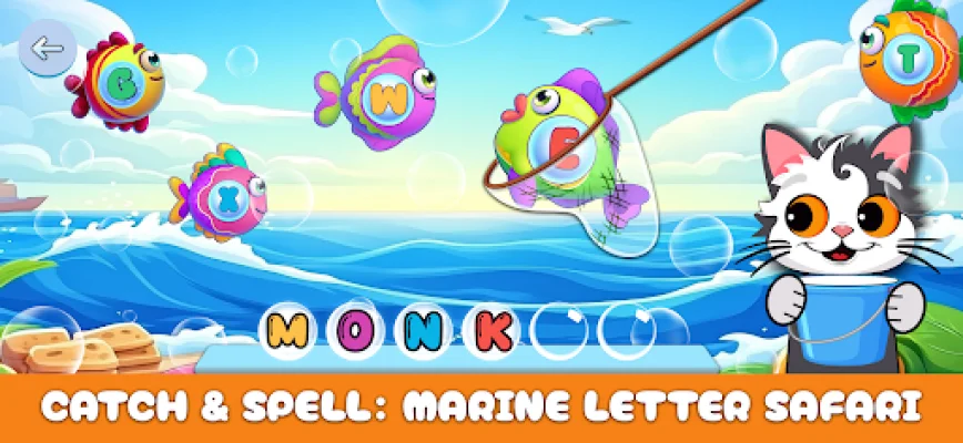 The game's "fish and catch" mechanic is not just for entertainment; it also embodies an innovative approach to teaching the alphabet and spelling. By incorporating elements of play into the learning process, "Letters Catch" creates an environment where children are excited to learn and discover, making early education more effective and enjoyable.