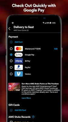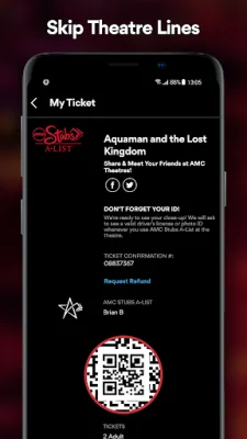 For AMC Stubs members, the app offers the convenience of being able to log into their account to earn and track points and rewards. Members can also access their virtual card and scan it at the theater to instantly apply their savings and rewards. A-List members can even make free movie reservations, while Premiere members enjoy waived online ticketing fees.