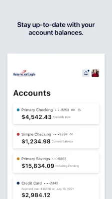 Manage Your Accounts: This application allows you to easily manage your financial accounts in one convenient place. You can make deposits, check your balances, pay bills, and schedule payments all from your phone or computer. You can also use the app to pay for loans and make real-time person to person transfers. Additionally, you have the ability to transfer money between your accounts and even between different financial institutions. You can also open new accounts and apply for loans through the app.