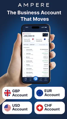 One of the main advantages of Ampere is its multi-currency business account, which comes with a UK IBAN, account number & sort code, and an EU IBAN. This allows you to send and receive payments from over 150 countries, and with the instant exchange feature, you can easily convert currencies in seconds or hold money in GBP and EUR.