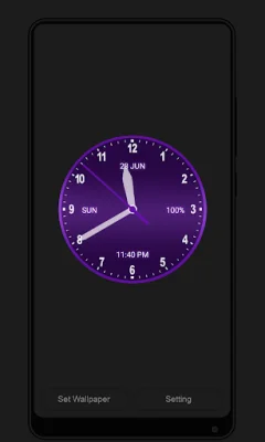 The analog clock displays the current time in either second or AM/PM format, as well as the current date, day of the week, and battery percentage on the digital clock style. Users can also choose from two colors for the gradient effect on their clock, with the option to customize the clock size.