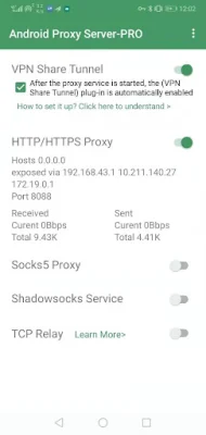 This app also solves the problem of not being able to access a proxy service on your phone after turning on a VPN service, by using plug-ins. However, if you use the VPN Share Tunnel plugin, you must bypass the proxy for the Android Proxy Server app in the VPN app you are using.