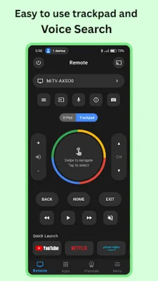 The app comes with a variety of key features that make it stand out from other TV remote apps. One of the most notable features is voice control, which allows you to use voice commands to search and control your TV. This makes it easier and more convenient to navigate through your TV's content. Additionally, the app has a built-in keyboard that allows you to type easily for quick searches and logins. The touchpad navigation feature also provides a smooth and intuitive interface, similar to a trackpad, for easy navigation.