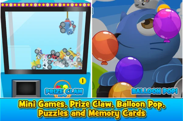At the end of each race, there are fun activities such as fireworks, balloon popping, and the prize claw, where children can collect more fruit and unlock new cars. The game also includes four mini games, including balloon pop, memory cards, puzzles, and the prize claw, providing even more hours of entertainment for your child.