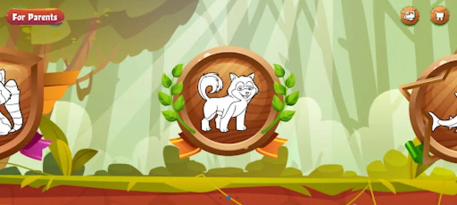The app also has a 'for parent' option, allowing parents to change the language or turn music on or off according to their preferences. This is a great way for parents and children to bond and create art together. The app is similar to other animal painting games and helps children learn colors, stripes, and patterns in a fun and engaging way.
