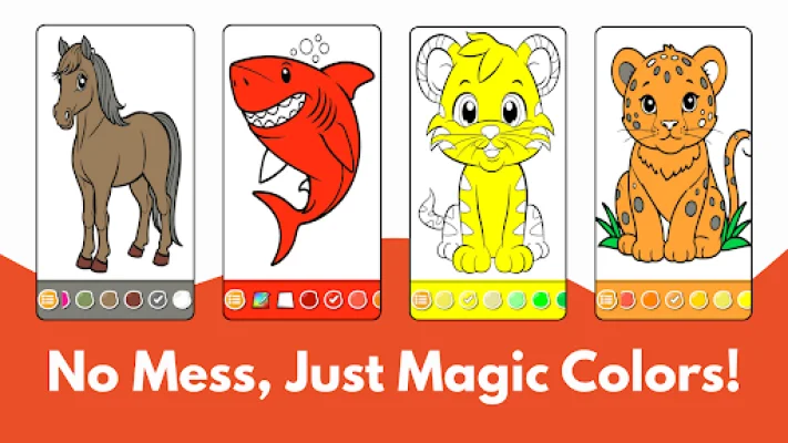 The app features a variety of cute animals, including lions, elephants, cats, dogs, jungle animals, farm creatures, and more. It also offers kid-friendly tools such as crayons, brushes, fill color, eraser, and undo, making it easy for children to use on their own. The app is also safe and ad-free, with no popups, interruptions, or in-app purchases.
