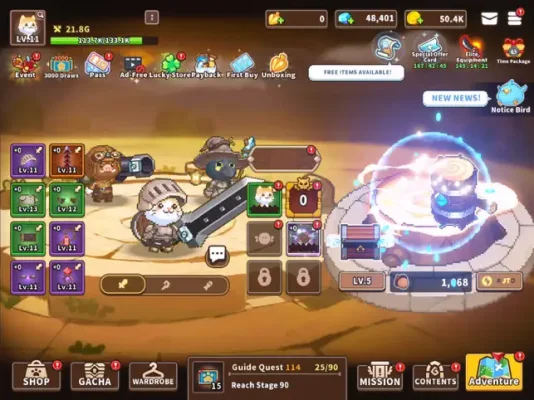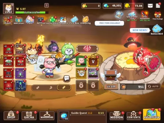 Collect your own cute animals and build your own squad of unique creatures in this charming application. With infinite equipment draws, you can say goodbye to endless grinding and hunting in traditional RPGs. Simply swing your hammer and your gear will appear, making it easier than ever to obtain powerful items.