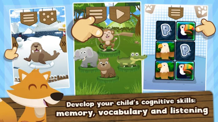Playing and learning animal sounds has never been easier with this app! With just a tap, your child can have a blast learning the sounds of animals from different environments such as home, the farmyard, and the jungle. The best part? Even babies can play without the help of an adult!
