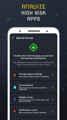 With this app, you can swiftly identify and eliminate malicious files and apps that may compromise your data or track your activities. You can also conduct a comprehensive audit to see which apps have access to your personal information and revoke access from those you don't want to share data with.