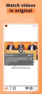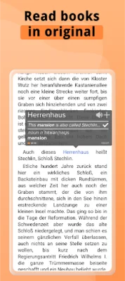 Additionally, our app offers a wide range of original materials such as videos and books in English, German, French, Spanish, and other languages. These materials are categorized by difficulty and genre, making it easy for everyone to find something to read or watch, even beginners. And if you can't find what you're looking for, you can upload your own books and videos to the app and enjoy them.