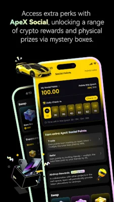 Security and self-custody are top priorities for ApeX Omni, with zk-proofs ensuring transparency and guaranteeing full control over assets for users. Additionally, the platform offers additional earning opportunities through ApeX Social, where users can redeem points earned through tasks like trading, referring, and daily check-ins for crypto and real-world rewards.