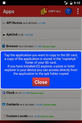 The purpose of this application is to store other apps in a specific directory called "copiaApk" on the SD card of your mobile device. This allows for easy access and organization of your apps, making it convenient for users to find and use their desired apps. Additionally, this feature can also help save storage space on your device, as you can transfer apps from your device's internal storage to the SD card.