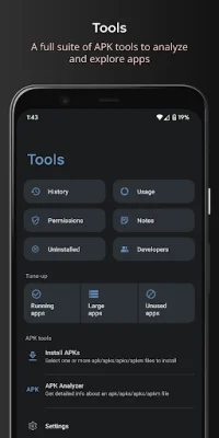 AppDash is a comprehensive application that allows you to easily organize and manage your apps. With the ability to create customizable tag groups, you can easily categorize and visualize your apps. You can also perform batch actions, such as backup and restore, and create sharable lists of apps. The app also offers an autotag feature to automatically categorize your apps. One of the key features of AppDash is its backup and restore capabilities. You can backup your apps to multiple locations, including internal storage, Google Drive, and SMB shares. For root users, the app offers full backup and restore of apps, app data, external app data, and expansion files. Non-root users can also backup their apps, but only the apk will be backed up. AppDash also provides detailed information about each installed app, including permissions, manifest, and app components. You can also save notes and rate your apps for easy reference. The app also maintains a history of app events, such as installs, updates, and uninstalls. With AppDash, you can also track your app usage, including screen time and number of launches. The app offers a weekly average and allows you to view usage details for individual apps or aggregated usage by tag. It also has a detailed permissions manager and a suite of tools to manage your installed apps, such as an app killer and a list of large apps. Additionally, AppDash allows you to analyze, extract, share, and install APK, APKS, XAPK, and APKM files. You can also quickly view new and updated apps and easily remove unused apps and those taking up too much storage space. The app also prioritizes privacy, with no ads and no collection or monetization of user data. However, a subscription or in-app purchase is required after a free trial period to support development and expenses.