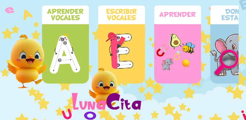 Con la ayuda de la divertida mascota "Lunacita" y sus amigos, los niños podrán aprender las vocales y vocabulario de una manera amena y entretenida. La aplicación también está disponible en español y sin necesidad de conexión a internet, lo que la hace ideal para niños pequeños.