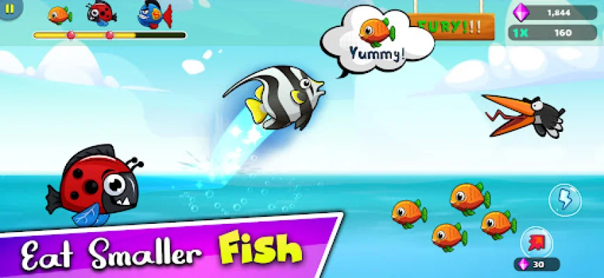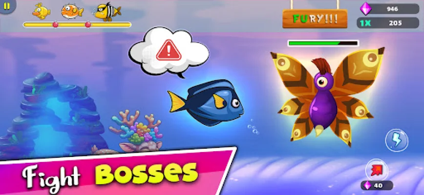 In this game, you start off as a small fish and your goal is to grow bigger by eating smaller fish. However, you must also be careful and watch out for predators who are trying to eat you. Along the way, you will encounter bosses who are always angry for no reason, so be cautious when dealing with them.