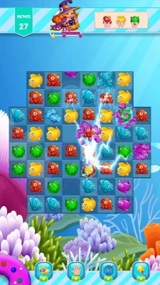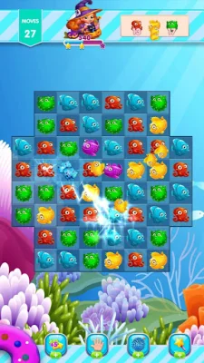 Aquarium Match 3 Mania has many exciting features that make it stand out from other puzzle games. The gameplay is super delicious and addictive, with hundreds of challenging and unique match-3 levels. You can also hit the hidden sweet floating island and complete timed tasks for extra rewards. The game also has different wonderful game-worlds with new designs, making each level feel fresh and exciting. To help you solve the quests, there are sweet and powerful boosters and tasty candies with interesting and special power-ups.