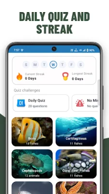 One of the key features of Aquatic Marine Quiz is the daily quiz challenges, which provide users with new sets of questions every day to keep their learning fresh and their memory sharp. The app also offers a wide range of categories to explore, including Bony Fishes, Cartilaginous Fishes, Cephalopods, Crustaceans, Coral Reef Fishes, and Echinoderms.
