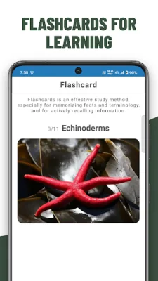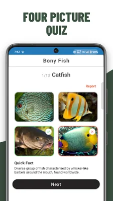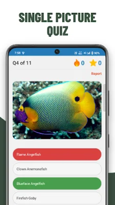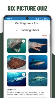 In addition to the interactive quiz format, each question is paired with an interesting fact to expand users' knowledge of marine life. The app also offers a learning mode, where users can browse through image collections and study flashcards at their own pace to master marine biology concepts.