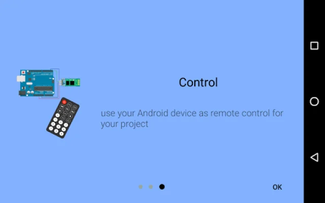 This application allows you to use your Android device as a remote control for any micro-controller that has a bluetooth module. This means that you can control your micro-controller from a distance using your phone or tablet. To use the app, you simply need to run it and search for your bluetooth module. Once you have found it, you can connect to it and start sending commands to your micro-controller.