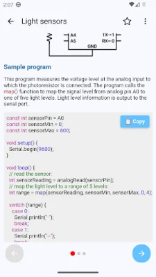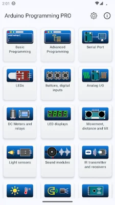 This application is a comprehensive reference guide for various electronic components, sensors, and modules that can be used with Arduino. It provides detailed descriptions, instructions, integration steps, and code examples for each item. It also includes test quizzes to aid in learning Arduino programming, making it a valuable resource for interview preparation and exams.