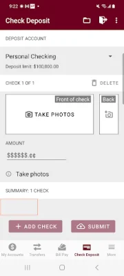 With the deposit check feature, you can easily and securely deposit checks into your account without having to visit a physical bank location. This saves you time and hassle, and allows you to access your funds faster.