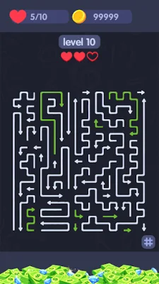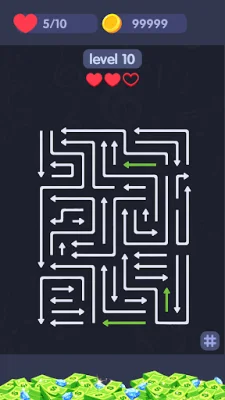 The gameplay of Arrow Music Tap is simple yet engaging. Players are transported into a serene and visually minimalist space where they must guide arrows to their targets. By tapping on an arrow, it glides smoothly in its pointed direction. Each successful level rewards players with gold coins and progresses them further into more intricate and calming puzzles. The game has no time limits, allowing players to focus on the arrows and the tranquil soundtrack designed to ease their minds.