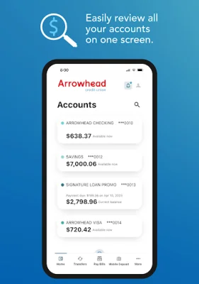 The Account Information application allows you to easily manage all of your finances in one convenient location. By linking your external accounts with your Arrowhead accounts, you can view all of your financial information in one spot. You can also customize your dashboard to display the specific accounts you want to see. With the Snapshot view feature, you can quickly check your account balances without having to log in. Additionally, you can access your account statements directly from your device. To stay on top of your finances, you can receive important account alerts through the app, text, or email notifications.