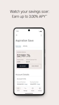 The Spend & Save Account is an application offered by Aspiration that allows users to spend, save, and invest their money while also making a positive impact on the environment. By signing up for Aspiration, users can feel good knowing that a tree will be planted with every purchase they make. Additionally, their deposits will not be used to fund fossil fuel exploration or production. This is made possible through Aspiration's partnership with Coastal Community Bank, a member of the FDIC, which ensures that approved deposit accounts are insured up to $250,000 per depositor. For balances over $250,000, excess funds are swept to one or more FDIC-insured depository institutions, providing up to $1.25 million in FDIC insurance per depositor.