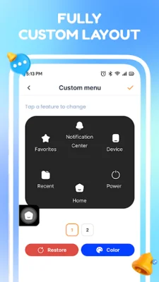 The app also offers advanced customization options, such as choosing from a variety of beautiful icons and adjusting the transparency of the floating button. You can also arrange the layout and shortcuts to fit your personal workflow, and set custom actions for single tap, double tap, or long press on the floating icon.