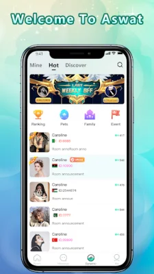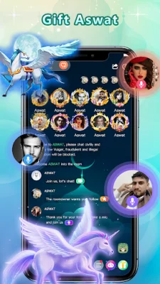 Aswat is an application that allows you to connect with others through voice chat and make new friends. It offers a free high-definition voice room where you can chat with multiple friends or join a friend's room to meet new and interesting people. The app also features various themed rooms for different occasions such as birthday parties, celebrations, and gift parties.