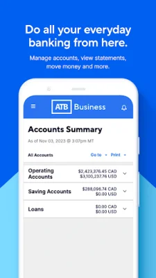 So why wait? Download the ATB Business app today and experience the convenience, security, and efficiency of managing your business finances on the go. And with features like Interac e-Transfer® and advanced security measures, you can rest assured that your finances are in good hands.