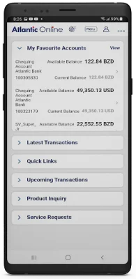 This application allows you to easily and efficiently manage your financial accounts, loans, and credit cards with Atlantic Bank. With just a few clicks, you can access all of your accounts and view their balances and transaction history. You can also add your favorite accounts for quick and easy access.