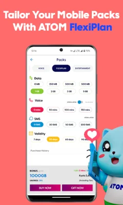 The app also offers a FlexiPlan feature, which gives users the freedom to create their own plan or bundle for data, voice, SMS, and validity. This not only allows for customization but also offers great savings and the option to gift plans to friends and family. Additionally, users can also purchase packages and take advantage of seasonal offers and gamifications through the Game and Rewards feature.