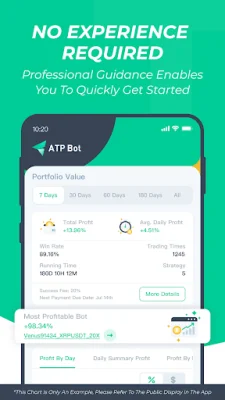 ATPBot is designed to be user-friendly, with a clean and intuitive interface suitable for all types of investors. Whether you are a beginner or an experienced trader, you can easily navigate the platform and enjoy a smooth trading experience. The application also prioritizes the security of user assets, only trading through API with their exchange account and ensuring transparent transactions.
