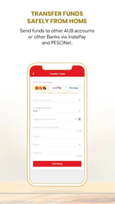 The app also allows for safe and secure fund transfers from the comfort of your own home. Clients can easily send funds to other AUB accounts or other banks through InstaPay and PESONet. This eliminates the need to physically go to a bank or ATM to make transfers.