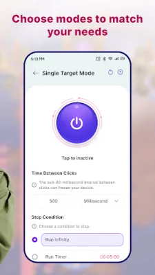 Auto Click - Fast Tap is a user-friendly and efficient application that allows you to automate taps on your device. It offers two modes - Single Target and Multiple Target - to suit your specific needs. With customizable clicks, you can set infinite taps, timer-based taps, or a fixed number of cycles. The app is easy to use, with simple activation, intuitive settings, and user-friendly controls. You can also save and manage your favorite click settings for future use.